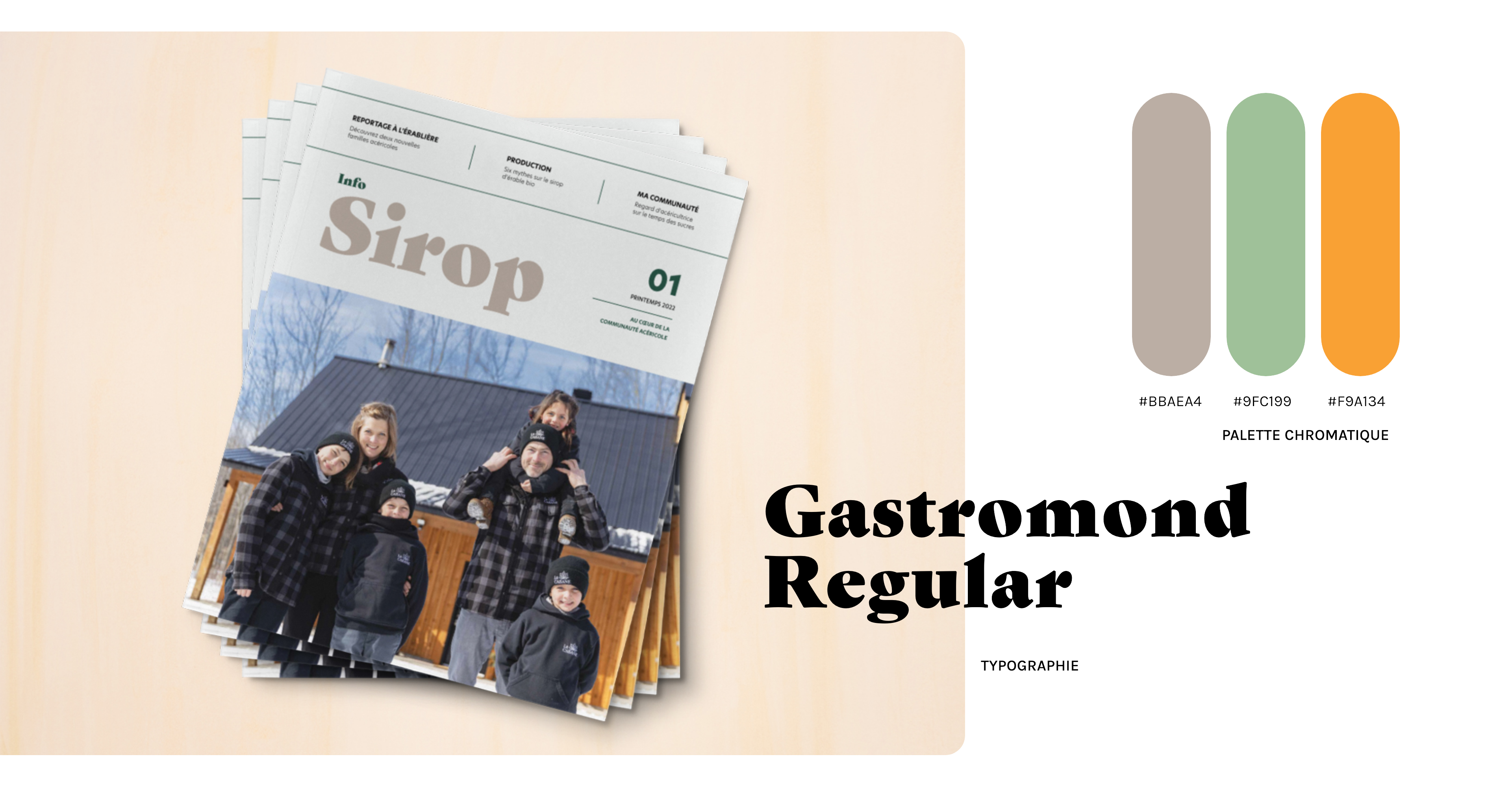 La signature et la grille graphique du magazine ont été développées en cohérence avec la nouvelle image de marque de la PPAQ tout en gardant l’objectif et le souci d’y apporter sa propre personnalité. On y retrouve, entre autres, une palette chromatique développée en lien avec le thème de la forêt.